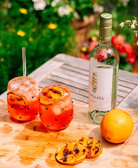 A refreshing blend of citrus and berry flavors with a sparkling twist. SEAGLASS Alcohol-Removed Pinot Grigio is mixed with tangy cranberry and fresh orange juice.